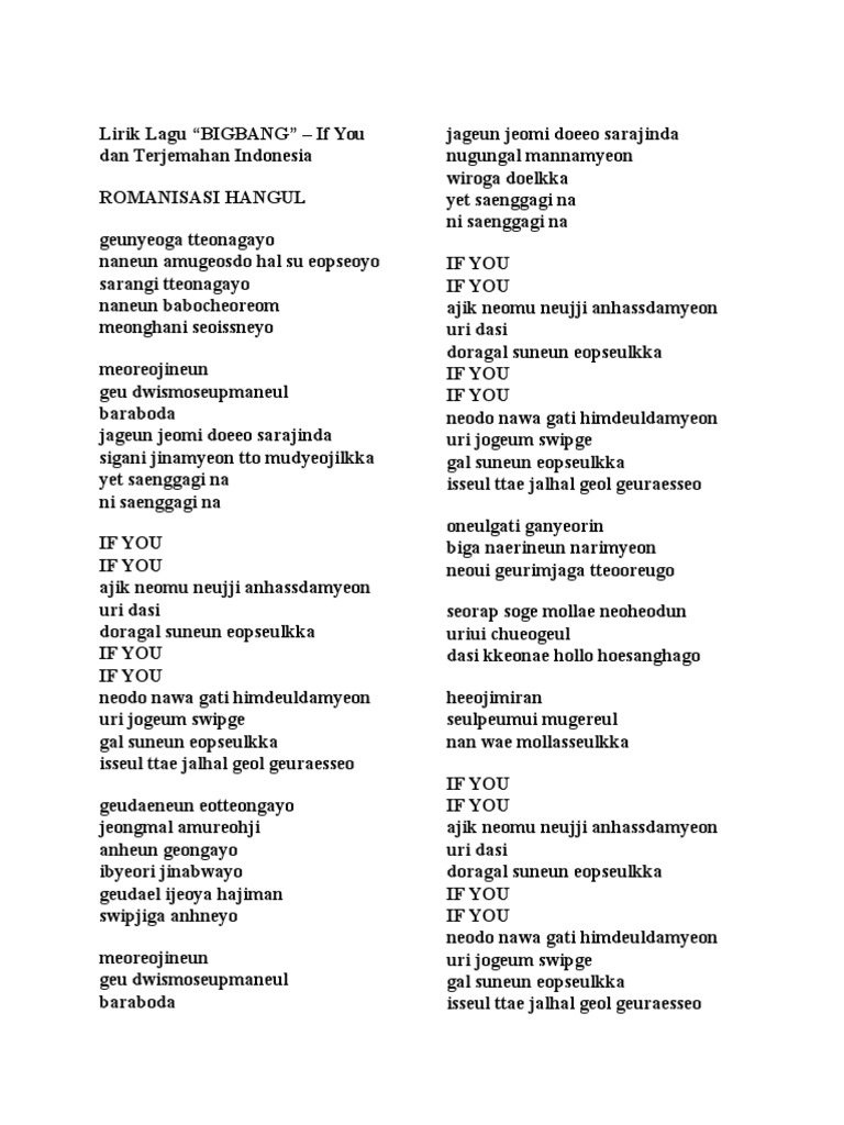 Doc Lirik Lagu If You Bigbang Nur Faida Academia Edu